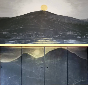 作品にはふたりの人物が描かれています。ひとりは當麻に龍神を招き寄せた役行者(えんのぎょうじゃ)。そしてもうひとりは、平安時代に當麻寺に真言密教を伝えた弘法大師・空海です。