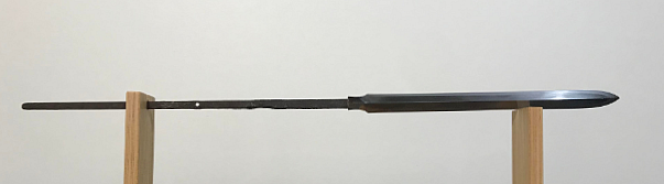 数百年の錆を落とし研磨を行ったあとの調査により、室町時代の大和派の刀工によるものと確認されました。南都寺院に属して興福寺僧兵の槍を多く手掛けた金房派の影響がみられ、當麻寺に属していた當麻派との関りにも注目されます。