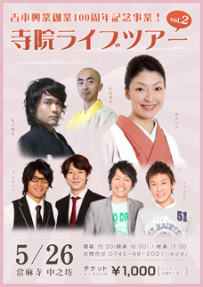 吉本興業100周年を記念して、よしもと芸人さんが古寺に出向く「寺院ライブツアー」。その第2弾が當麻寺中之坊で行われました。
