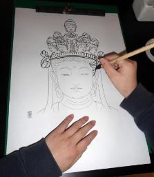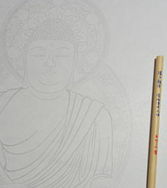今回、中村先生に描いていただいた仏画は、当坊の写仏用紙として制作され、今後、写仏として体験していただけますので、どうぞご参加くださいませ。