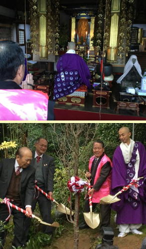 平成29年2月5日、當麻寺中之坊に若木が運ばれ、まず「中将姫剃髪堂」にて導き観音さまと中将姫さまの前で法会が営まれたあと、国の史跡・名勝である中之坊庭園「香藕園」の中に植樹されました。