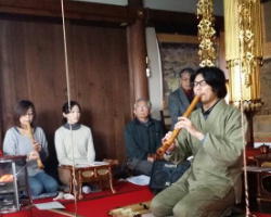 また、法会終了後には、上野さんの指導による尺八の「音出し体験」の時間もございます。