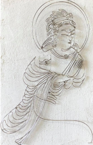 金堂にお祀りされる當麻寺の根本本尊、国宝・弥勒仏坐像をもとに、種智院大学・中村幸真教授が描き起こされたものです。