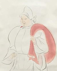 中之坊が所蔵しております中将姫さまの最古の肖像画をもとに、久保田聖美先生によって下絵が制作され、8月に完成いたしました。以来、ご希望の皆さまには、その下絵のコピーの上に薄美濃紙を敷いて描き写していただいておりました。